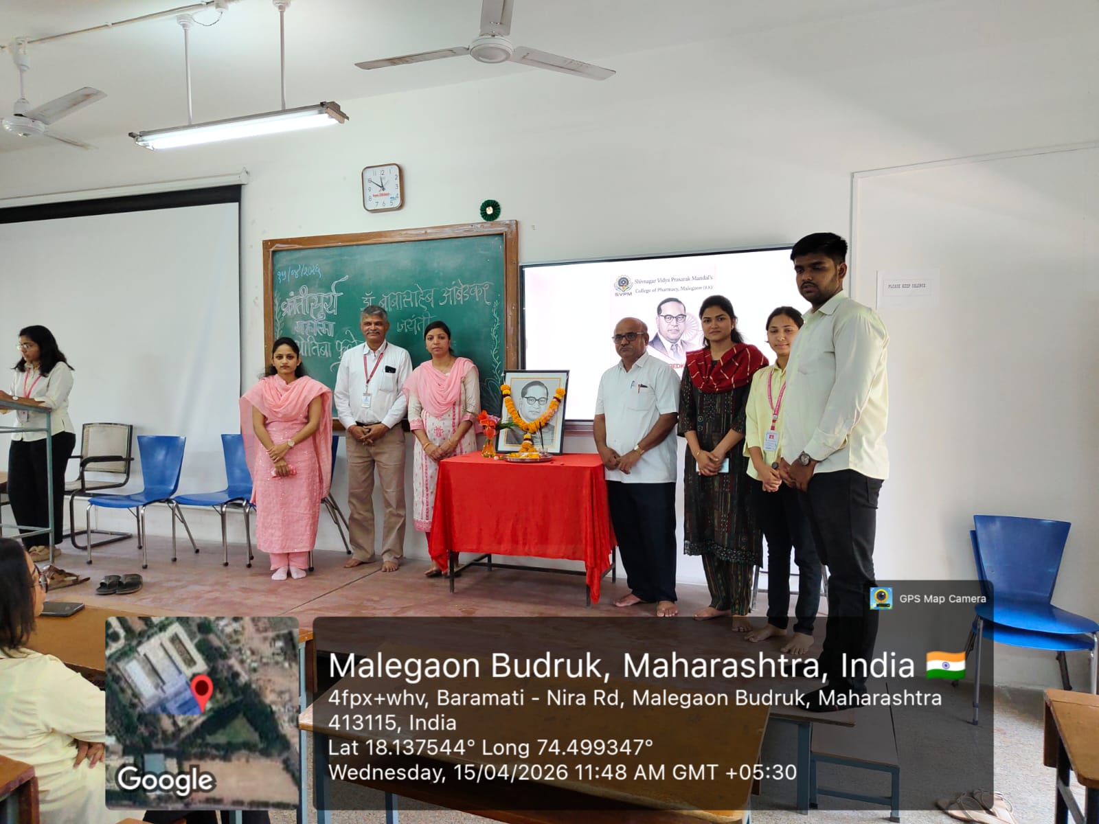 On 15th April 2026, SVPM’s College of Pharmacy celebrated the birth anniversary of B. R. Ambedkar with great respect and enthusiasm. The program began with a floral tribute, followed by a brief speech highlighting his contributions to equality and the Indian Constitution. Students actively participated and reflected on his message, “Educate, Agitate, Organize.” The event inspired everyone to uphold values of justice and social responsibility.